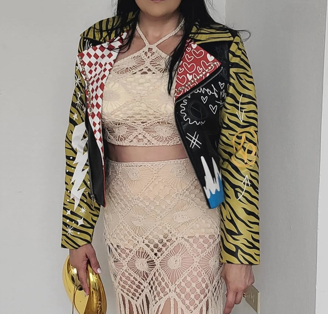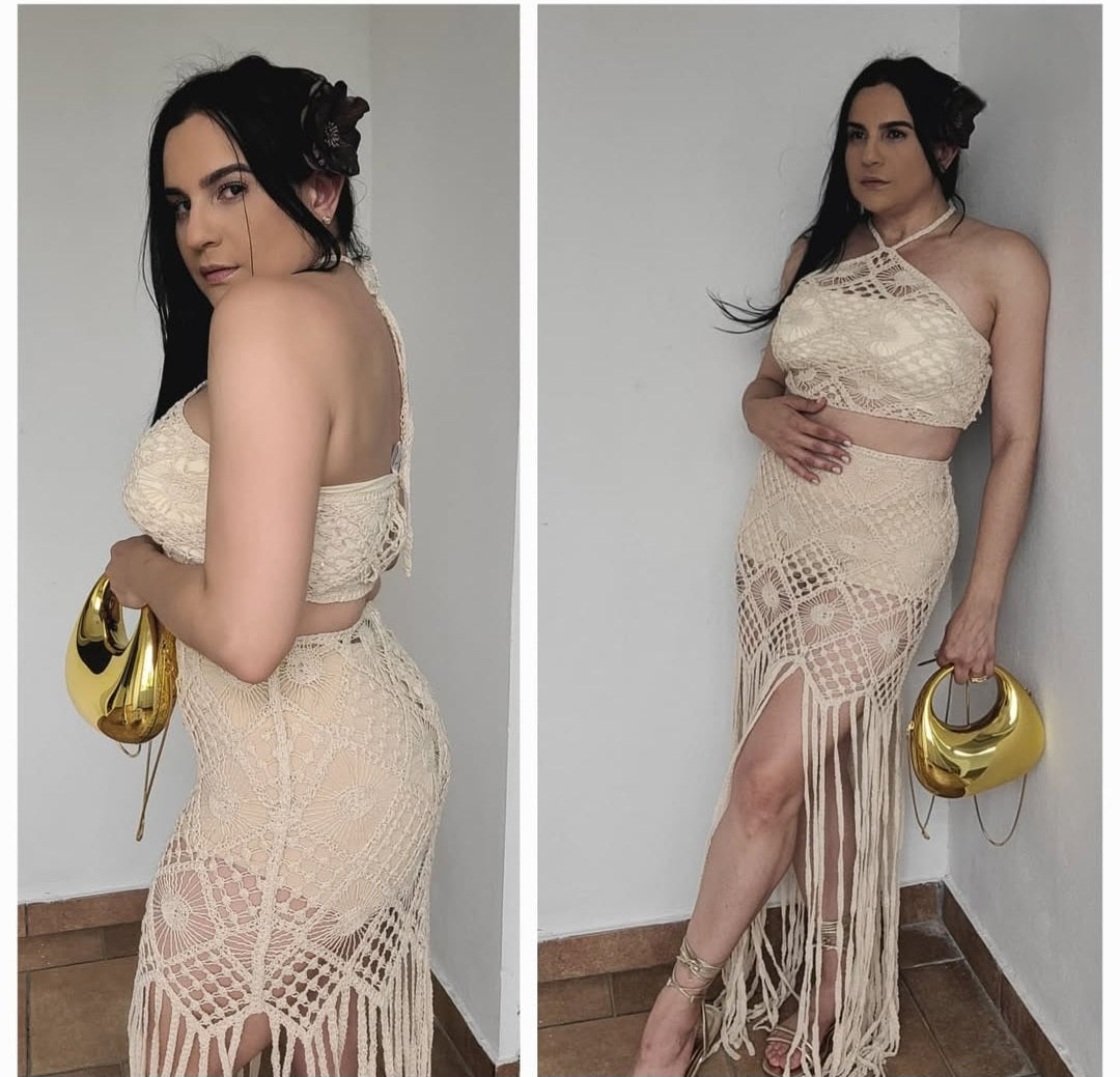 "Elegant crochet halter set featuring a fitted top and high-waist skirt with long fringe detail. A unique statement piece designed for summer events, vacations, and special occasions." ( bra and short not included)